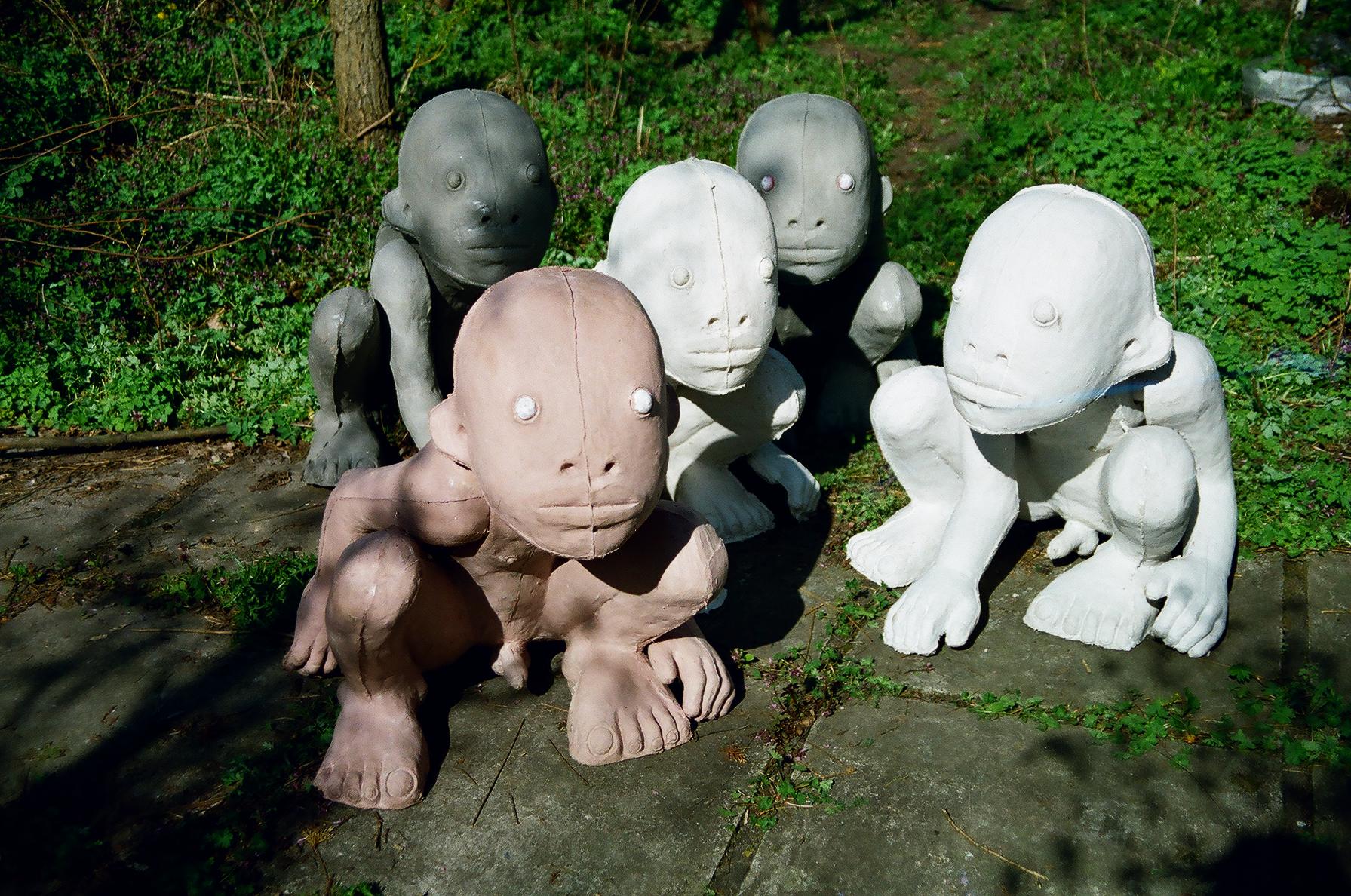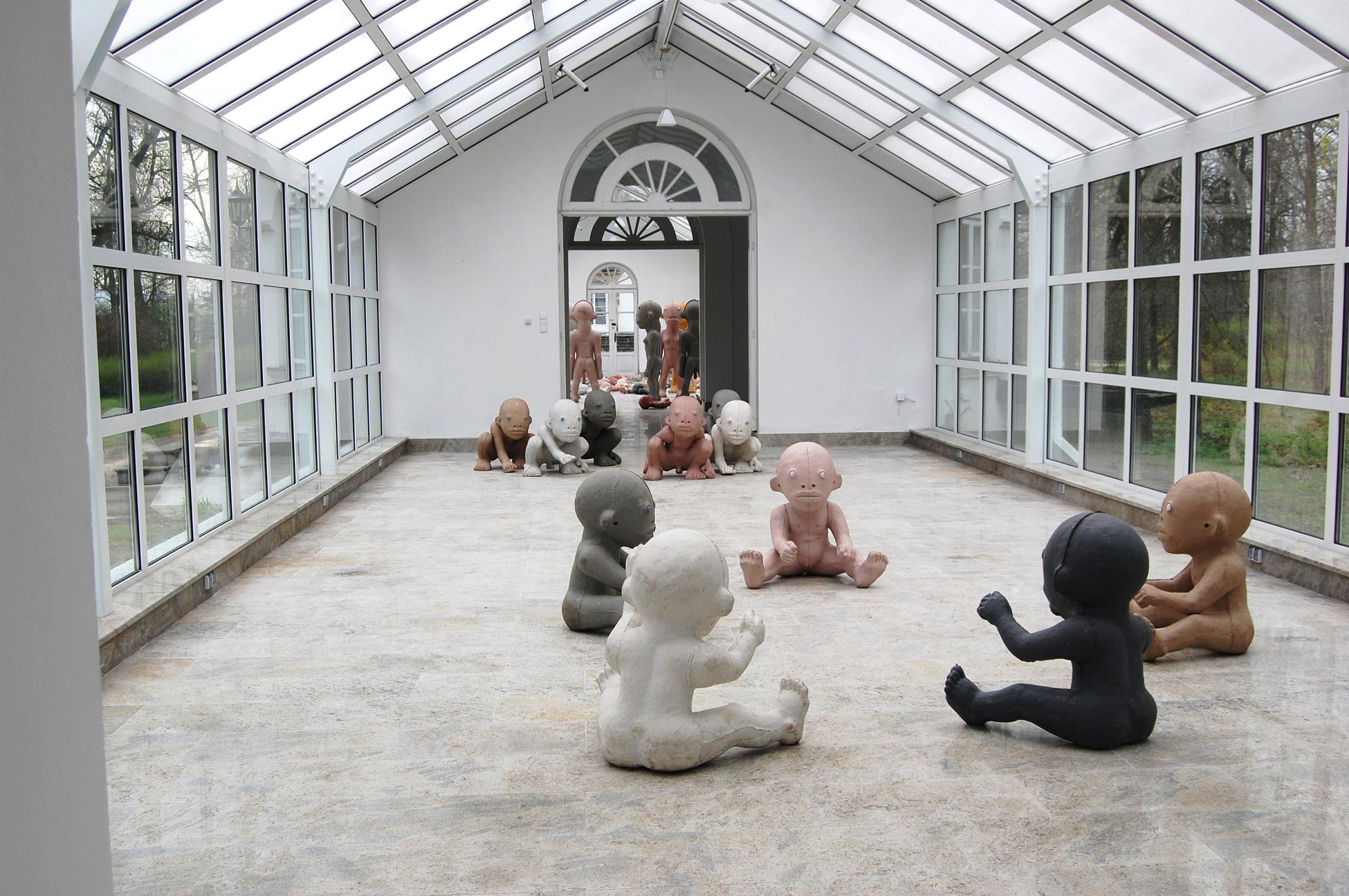 Niewiniątka (przykucnięte) / 2007, masa silikonowa, 80 x 80 x 60 cm.